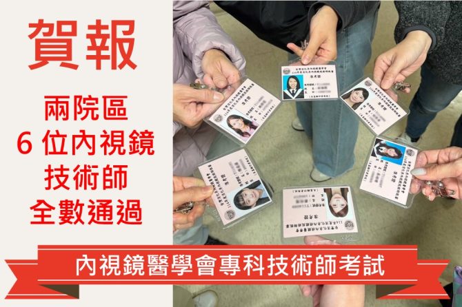 賀報!兩院區 6 位內視鏡技術師,全數通過內視鏡醫學會專科技術師考試