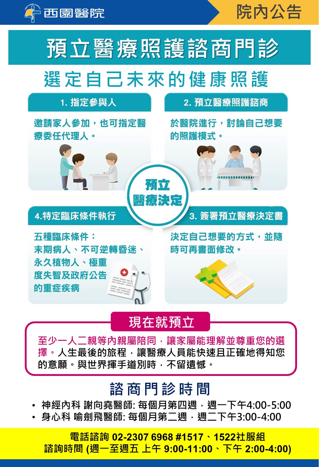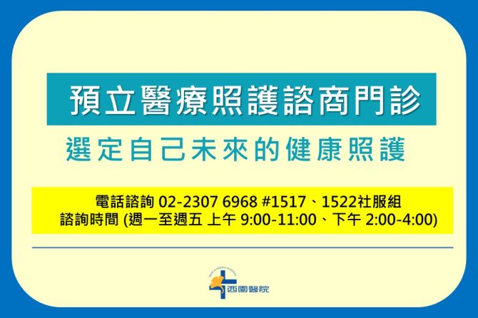 依據病人自主權立法、本院提供預立醫療諮商服務