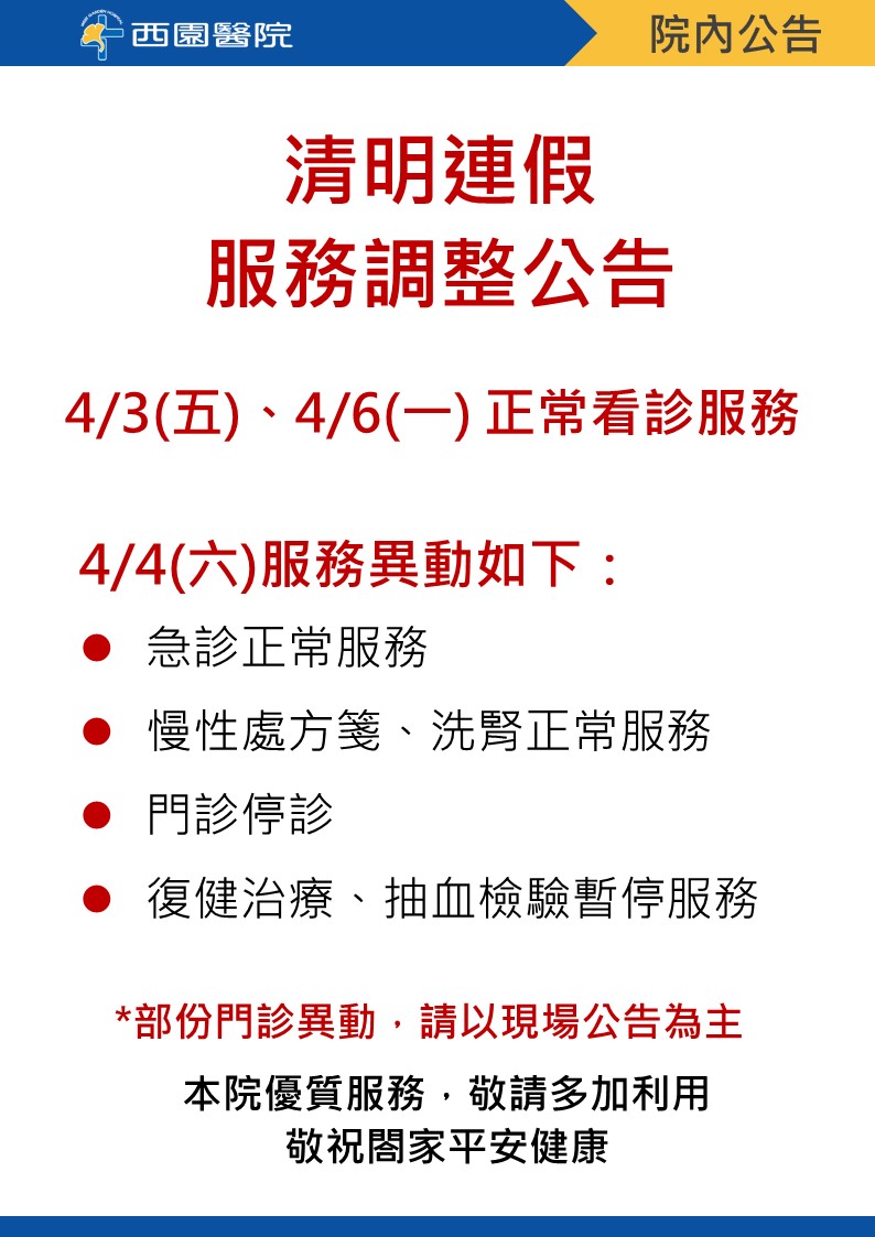 © 2023 西園醫院 All Rights Reserved